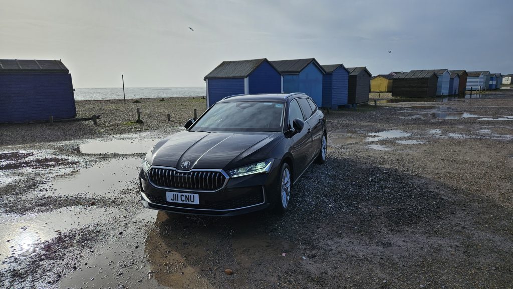 The latest Skoda Superb estate is an award winning car for both its features and size. 690litres of space on the boot? makes no sense to us either! In practical terms the car can fit 4 large suitcases and 4 medium size carry on cases and a few bags as well. This should be plenty of room for 4 passengers. As you can see from the pictures there is plenty of space and legroom in the back allowing you to relax while we take you to your destination.